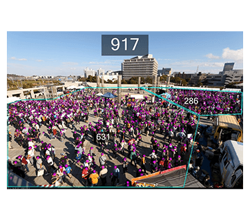 This analytics system count even a dense crowd of people who overlaps each other due to our unique technology with ability to detect smaller human pixel, resulted count ability to more than 80,000 people on a single frame.