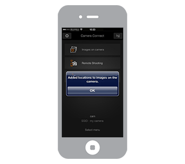 - Once shooting is complete, reconnect your mobile device to your camera and tap [OK] to transfer logged information
