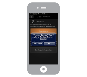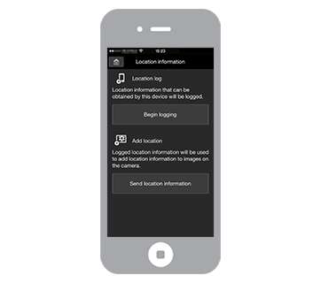 ], return to the [Location information] screen and tap [End logging] - Tap [Send location information] to tag photos in your camera with the recorded GPS data