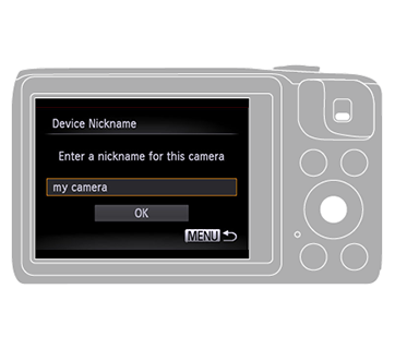 ] button located on the camera body - Enter a nickname for your camera and press [OK]
