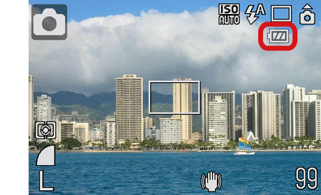 Turn on the camera, and the battery icon will appear on the right top of the LCD monitor. If the icon does not appear, press the <DISP.> (