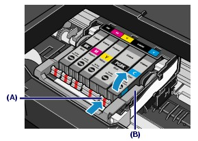 Push the tab (A) and lift the ink tank to remove.