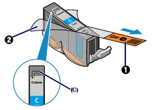 Make sure that the film is completely removed from the air hole (C). If the air hole is blocked with the remaining film, ink may leak out or may not eject properly.