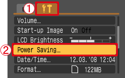 - The power saving function will not activate during a slide show or while the camera is connected to a computer.