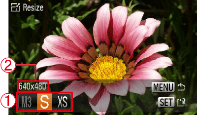 the resolution after resizing will appear.After you select the resolution you want to resize, press the <FUNC./SET> (