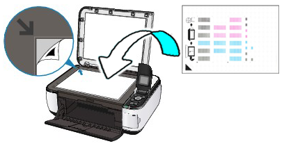 Place the print head alignment sheet with the printed side FACING DOWN and align the