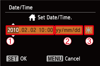Set the year, month, date, and time.