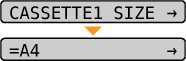 2. Select [TRAY PAPER SIZE], [CASSETTE1 SIZE] or [CASSETTE2 SIZE] using [