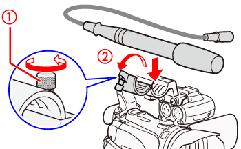 When using a microphone, attach the supplied microphone holder unit to the camcorder as necessary.