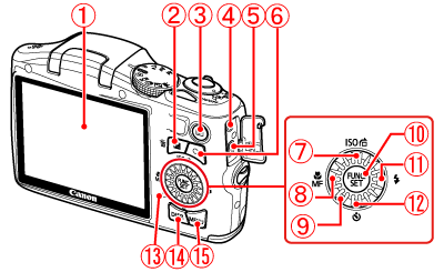 ![]() | Screen (LCD Monitor) | ![]() | Control Dial |
