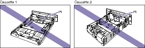 e. Do not touch the black rubber pad (A) in the paper cassette. This may result in misfeeds.