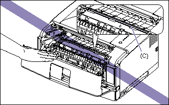 f. Do not touch the transfer roller (C), as this may result in deterioration in print quality.