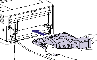 - Holding the duplex unit as shown in the figure, push it into the printer firmly and horizontally.