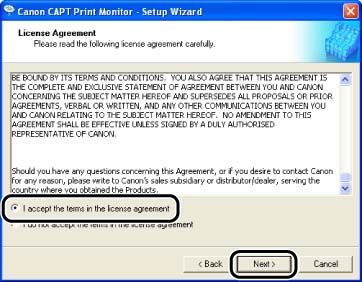 8. Confirm the contents and select [I accept the terms in the license agreement], and then click [Next].
