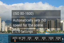 For details on the setting screen that appears on your camera or the [Shooting Modes] in which the [ISO Speed] can be set, see the table at the end of the page.