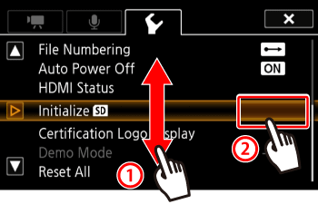 - If you selected the [Complete Initialization] option, you can touch [Cancel] to cancel the initialization while it is in progress. All recordings will be erased and the memory can be used without any problem.