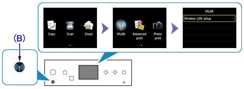 The Wi-Fi lamp (B) flashes when wireless connection is enabled.