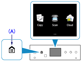 1. Press the HOME button (A) on the printer.