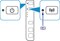 2. Make sure the Wi-Fi lamp (C) flashes quickly and the POWER lamp is lit as shown below.