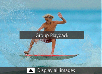 - During group playback (step 3), you can browse through images quickly "Navigating through Images in an Index" and magnify them "Magnifying Images". By choosing [Protect All Images in Group] in "Protecting Images" or [All Images in Group] in "Erasing Multiple Images at Once", or "Adding Images to the Print List (DPOF)" , or "Adding Images to a Photobook", all images in the group can be manipulated at once.