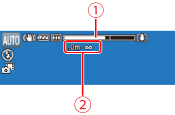 > (wide angle). (A zoom bar showing the zoom position is displayed, along with the area in focus.)