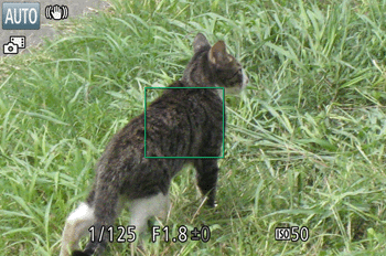- Press the shutter button halfway. The camera beeps twice after focusing, and AF frames are displayed to indicate image areas in focus.