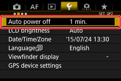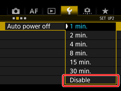 Please refer to the camera’s instruction manual for more information about the Auto power off settings.