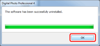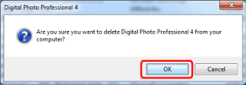 Click [OK] to start the uninstallation of Digital Photo Professional 4.