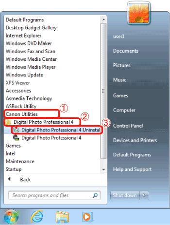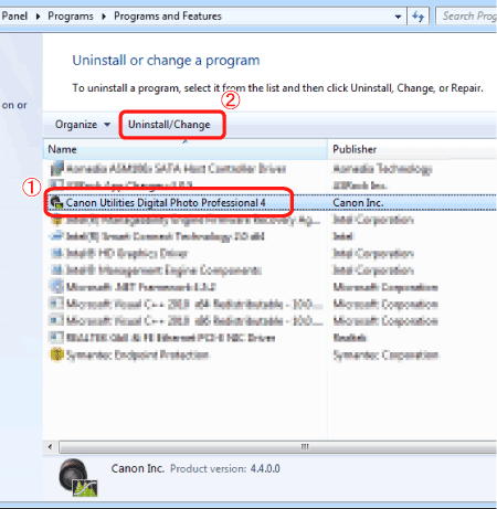 When Digital Photo Professional Ver.4.x is Buggy / How to Uninstall (Delete) Digital Photo Professional and Reinstall from the Included CD-ROM "EOS DIGITAL Solution Disk" (Windows 7)