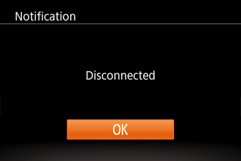 12. When the connection with the smartphone ends, the screen below is displayed on the camera. Choose [OK] and press the [