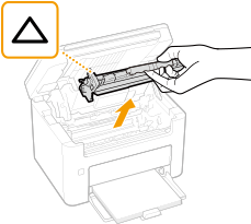 Do not shake or tilt the toner cartridge. Also, make sure to avoid applying shocks to the toner cartridge, such as by hitting it against something. Doing so may cause the toner left in the toner cartridge to leak. Remove the toner cartridge gently at the same angle as the slot.