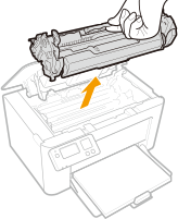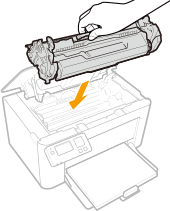 Do not shake or tilt the drum cartridge. Also, make sure to avoid applying shocks to the drum cartridge, such as by hitting it against something. Doing so may cause the toner left in the drum cartridge to leak. Remove the drum cartridge gently at the same angle as the slot.