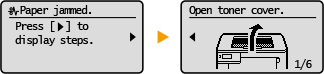 If a paper jams, <Paper jammed.> is displayed on the screen. Press